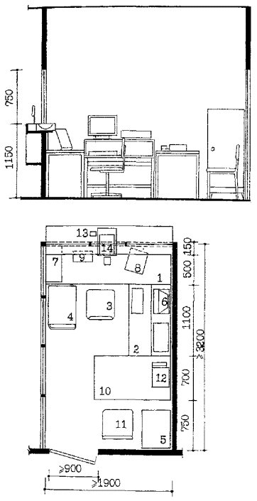 Рис. 6.4. ПОМЕЩЕНИЕ БЮРО ПРОПУСКОВ НА 1 РАБОЧЕЕ МЕСТО /ВАРИАНТ 2/