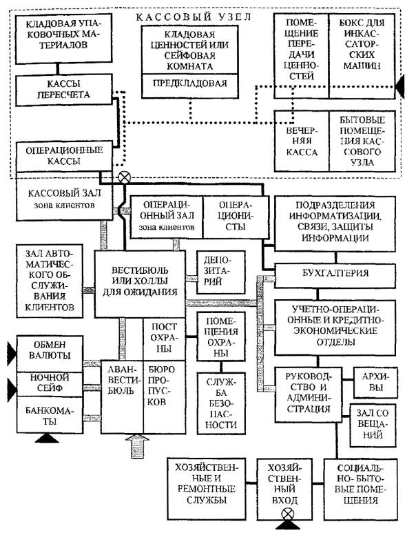 На рис. 3.1. приведена схема взаимосвязи помещений коммерческого банка.