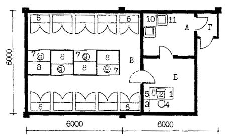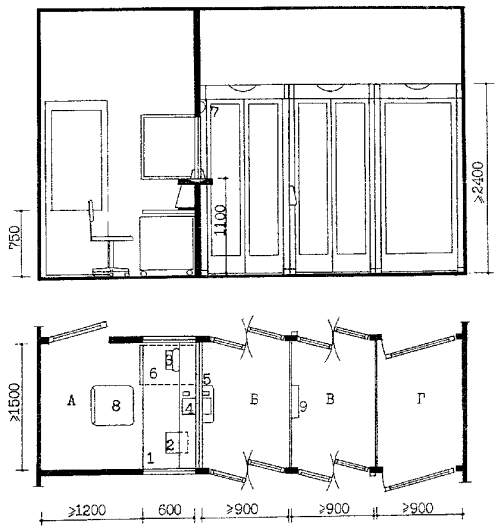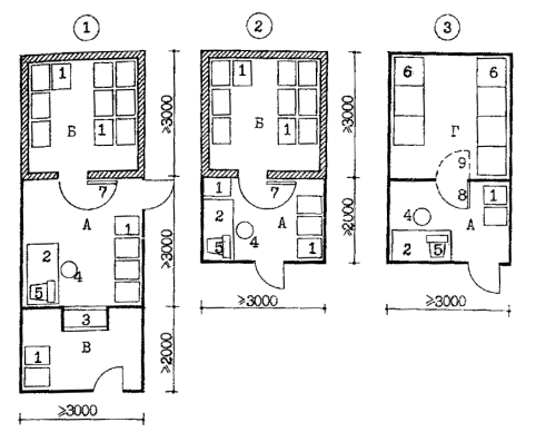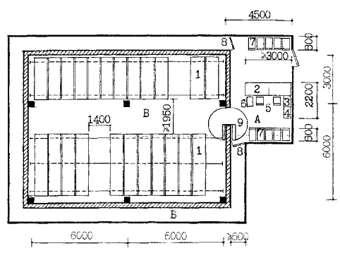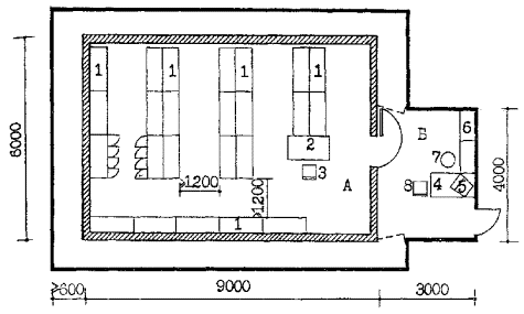 Рис. 6.2. ПОМЕЩЕНИЯ ДЛЯ ХРАНЕНИЯ, ЗАРЯЖАНИЯ И ЧИСТКИ ОРУЖИЯ