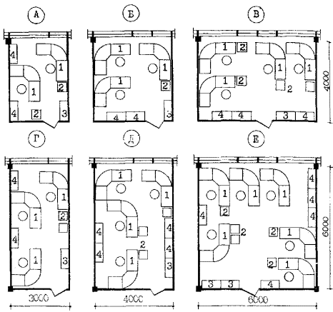 К этой группе примыкают помещения вспомогательного и обслуживающего назначения (помещения для совещаний и переговоров, для хранения, обработки и размножения документации, предприятий общественного питания и др.).
