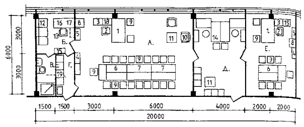 Ряд помещений вспомогательного и обслуживающего назначения, не являющихся специфическими для данного типа зданий (такие как конференц-залы, буфеты, ремонтные мастерские и хозяйственные кладовые и т.п.) в пособии не рассматриваются.