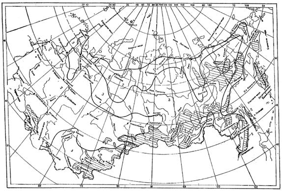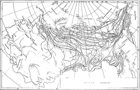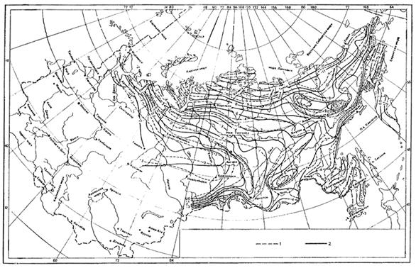 Распространение и мощность мерзлотных (криогенных) процессов, средняя годовая температура вечномерзлых грунтов |
