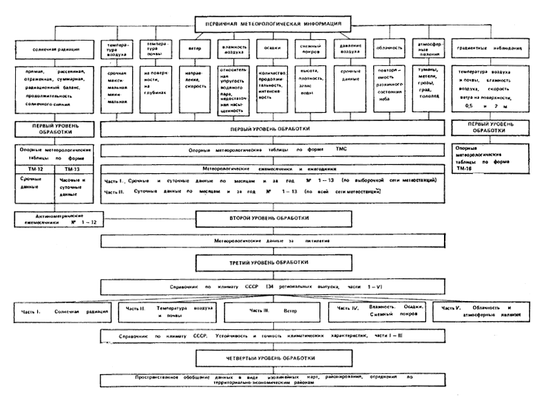 Данные опорных метеорологических таблиц, ежемесячников и ежегодников составляют первый уровень обработки.