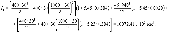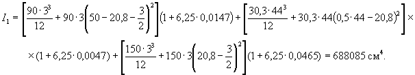 I1- момент инерции сечения, приведенного кбетонному, относительно его центра тяжести;