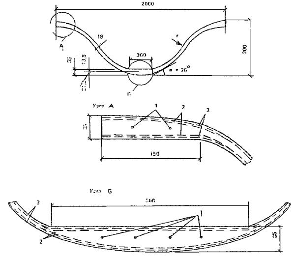 Складчатыеэлементы применяют следующих размеров (рис. 12): длина до 8 м, ширина 1 -1,5 м, толщина 15 - 25 мм. Стержневая арматура, обычная или предварительнонапряженная, размещается соответственно между специально уложенными слоямитканых сеток.