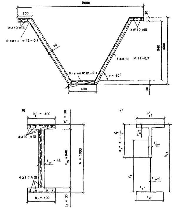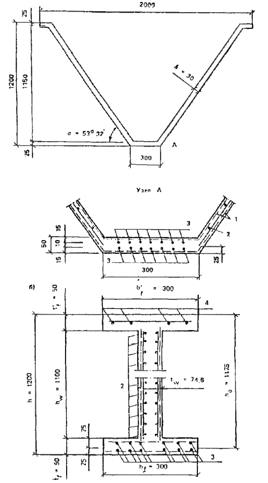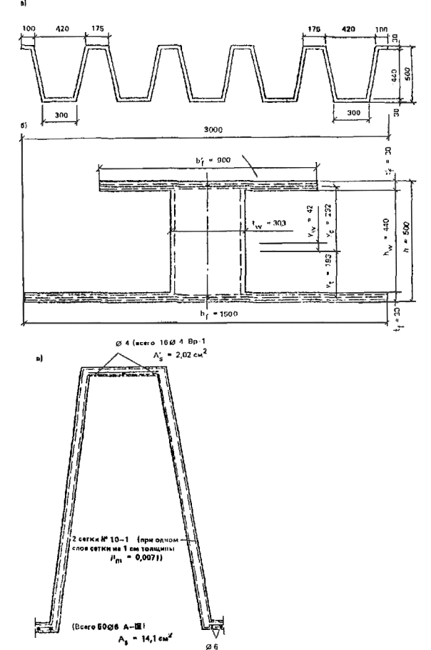 Видарматурных элементов плиты-складки, классы стали и бетона аналогичны описаннымвыше для плиты-оболочки.