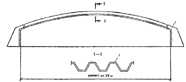 Рис.2. Сборные сводчатые покрытия пролетом 12 - 18 м с безрулонной кровлей изармоцементных элементов двоякой кривизны