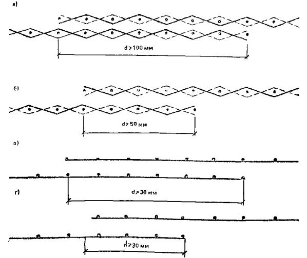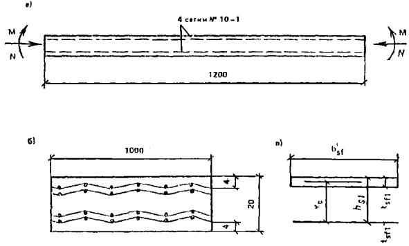 1.2. Армоцементнымиконструкциями принято называть тонкостенные железобетонные конструкции (толщинадо 30 мм), изготовляемые из мелкозернистого бетона, в качестве арматуры которыхприменяются: частые тонкие, сварные или плетеные проволочные сетки, равномернораспределенные по сечению элемента (сетчатое армирование); частые тонкиетканые, сварные или плетеные проволочные сетки, равномерно распределенные посечению, в сочетании со стержневой или проволочной арматурой (комбинированноеармирование) (рис. 1).