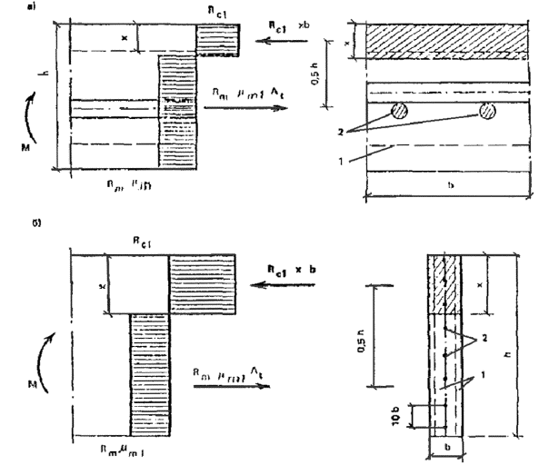 A's, As - площади сечения ненапрягаемой стержневойарматуры на единицу ширины соответственно в сжатой и растянутой зонах;