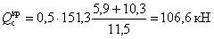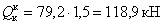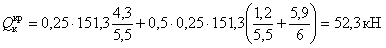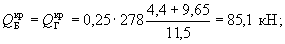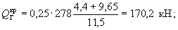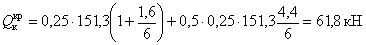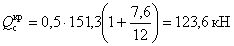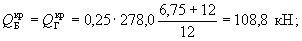 где K1 = 0,25 - пo п. 1 табл. 4; K2 = 0,8 - по п. 2 табл. 5; Qk = N = 221 кН; A = 0,4 - при расчетной сейсмичности 9 баллов.