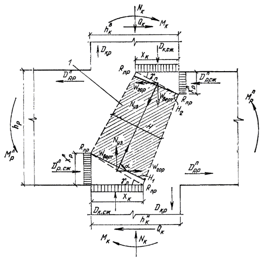 и диссипативной силы (силы трения в трещинах бетона колонн), возникающей при колебаниях системы - Qтр