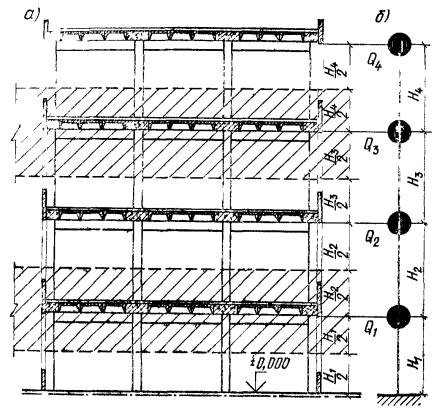 устанавливается расчетная динамическая схема здания и ее параметры;
