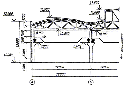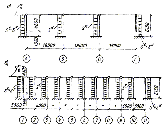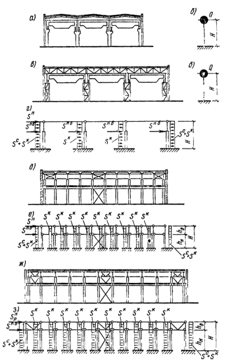 Горизонтальные нагрузки от масс на гибких подвесках, температурные климатические воздействия, ветровые нагрузки, динамические воздействия от оборудования и транспорта, тормозные и боковые усилия от движения кранов при этом не учитываются.
