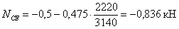 Nв = 242,5·0,7/1,3 = 130,6 кН (при действии вертикальной сейсмической нагрузки вверх).