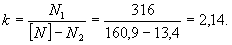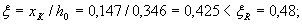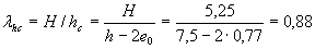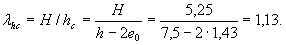 ω = 1 + e0/h = 1 + 1,43/7,5 = 1,19 < 1,45.