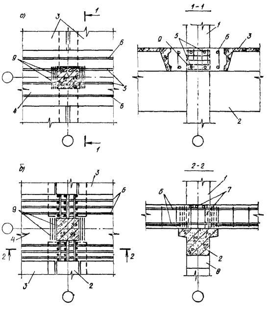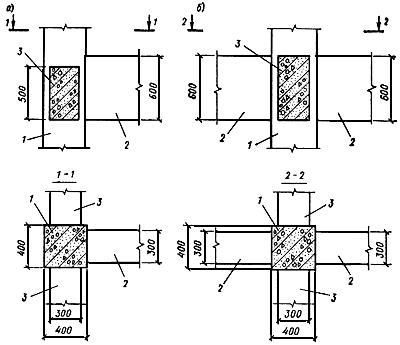 Примечание. В многоэтажных зданиях со сборными каркасами из линейных элементов допускается устраивать стыки ригелей с колоннами в местах их соединения между собой при условии обеспечения надлежащей прочности стыков.