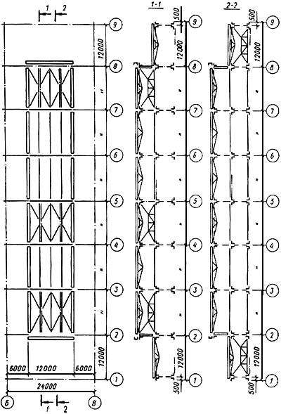 1.1. Настоящее пособие составлено к СНиП II-7-81 «Строительство в сейсмических районах» и распространяется на проектирование производственных зданий с размерами в пределах габаритных схем по ГОСТ 23837-79 и ГОСТ 24337-80 с железобетонными, стальными и смешанными (с железобетонными колоннами и стальными стропильными конструкциями) каркасами, применяемыми в массовом промышленном строительстве в районах с сейсмичностью 1, 8 и 9 баллов.