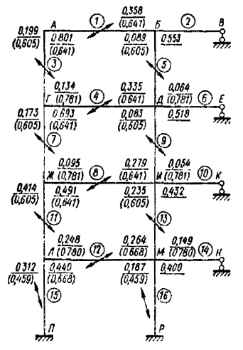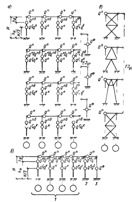 После определения параметра ν находят поперечные силы Qн для каждой колонны в соответствии со значениями параметра р и других параметров данной колонны.