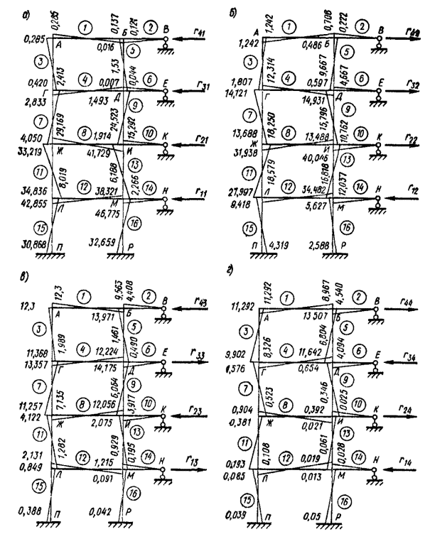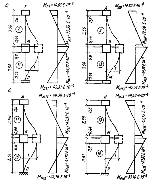Для здания в целом параметры Жн, Жр, Мр, р и сила N усредняются, т.е. определяются суммы значений каждой из указанных величин и делятся на число колонн. Остальные величины по формулам (105) - (110), (114) - (117) вычисляются для здания в целом.
