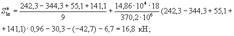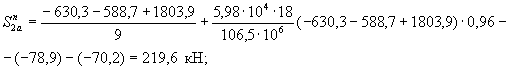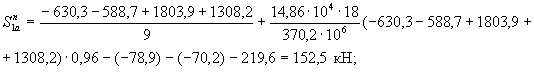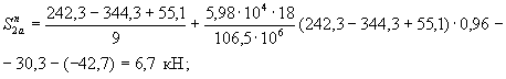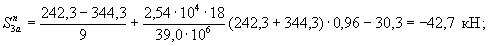 Nн = [6,85(6·1,5 + 3·4,2) + 25·6·0,6·0,38 + 0,5·3·4,2] 1,1·0,9·1,3 = 242,5 кН (при действии вертикальной сейсмической нагрузки вниз);