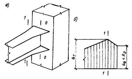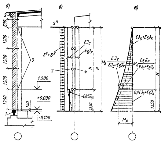 Расчетная схема междуоконного простенка изображена на рис. 149, б.