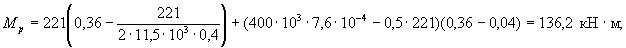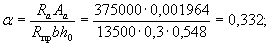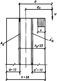 Колонна армирована 4d22 АШ (RII = 400 МПа; Ea = 2,06·105 МПа); Fa = F'a = 7,6·10-4 м2; a = a' = 0,04 м; h0= 0,36 м.