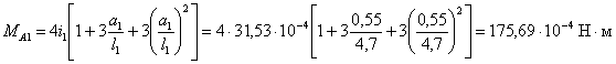 4. Устанавливаем прогиб колонны по формуле (106), предварительно определив параметры, входящие в расчетную формулу.