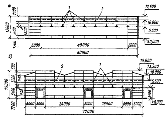 Здания рекомендуется проектировать прямоугольной формы в плане с параллельно расположенными пролетами, без перепада высот смежных пролетов и без входящих углов.