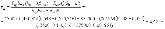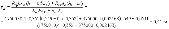 II. Вертикальная сейсмическая нагрузка действует вверх Nн = 249,1 кН; M = 357 кН·м; Q = 68 кН; e0 = 1,43 м; e0 = 1,43 м > 1/3y = 1/3·3,75 = 1,25 м. Эксцентриситет выходит за пределы ядра сечения, в расчетную формулу вводим растянутую часть сечения.