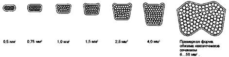 - для многопроволочных жил,присоединяемых пайкой или под винт с помощью специальных наконечников, 0,35 мм2.В технически обоснованных случаях допускается применение проводов смногопроволочными медными жилами, присоединяемыми пайкой, сечением менее 0,35мм2, но не менее 0,2 мм2;