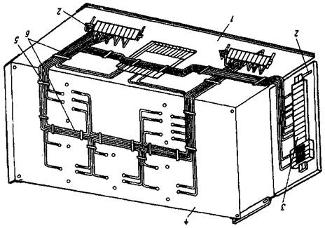 Низковольтное устройство распределенияи управления (НКУ)*- комбинациянизковольтных коммутационных аппаратов с устройствами управления, измерения,сигнализации, защиты, регулирования и т. п., полностью смонтированныхизготовителем НКУ со всеми внутренними электрическими и механическимисоединениями с соответствующими конструктивными элементами.