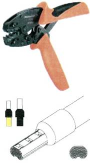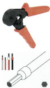 Инструмент для обжима кабельныхнаконечников с сечением 0,25-1,5 мм2 с пластиковыми втулками или безпластиковых втулок и двойных наконечников с сечением 0,5-1,0 мм2.