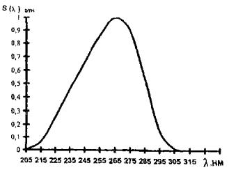 На рис.1 приведена криваязависимости относительной спектральной бактерицидной эффективности