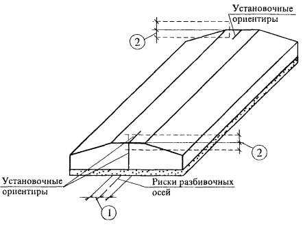 1. Отклонение от совмещения ориентиров (рисок геометрических осей, граней) в нижнем сечении ферм (балок) с установочными ориентирами (рисками геометрических осей или гранями нижележащих элементов) 8 мм.