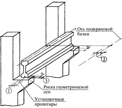 1. Отклонение от совмещения ориентиров (рисок геометрических осей, граней) в нижнем сечении подкрановых балок с установочными ориентирами (рисками геометрических осей или гранями нижележащих элементов) 8 мм.
