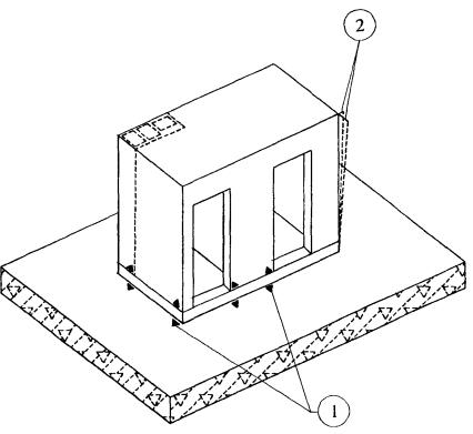 1. Отклонение от совмещения ориентиров (рисок геометрических осей, граней) в нижнем сечении санитарно-технической кабины с установочными ориентирами (рисками геометрических осей или гранями нижележащих элементов, рисками разбивочных осей) 8 мм.