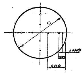 Рис. 3. Координатыточек измерения давлений и скоростей в воздуховодах цилиндрического сечения.