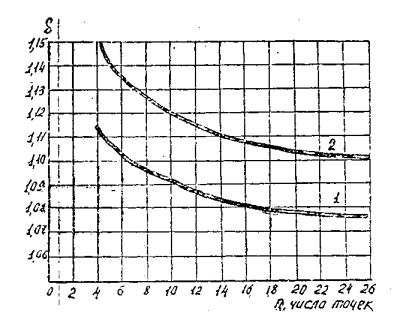 Рис. 2. График поправочных коэффициентов навеличину расхода, воздуха по воздуховоду при измерении по методу равноотстоящихточек: