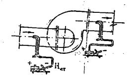 Рис. 5 Схемы присоединенияпневмометрической трубки к микроманометру при определении напора, развиваемоговентилятором.