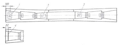 2.8. Уклон подрельсовыхплощадок к продольной оси шпалы в вертикальной плоскости, проходящей через ось(подуклонка), должен быть в пределах от 1:18 до 1:22 для шпал первого сорта иот 1:16 до 1:24 для шпал второго сорта.