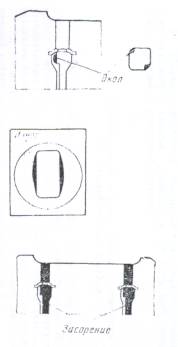 | 52.2 | Вторая | Невозможность завинчивания гайки закладного болта из-за провертывания этого болта в отверстии шпалы даже при подтягивании болта вверх | Износ продольных кромок отверстия в закладной шайбе до размера, превышающего диагональ подголовка закладного болта ( | При наличии шпалоремонтных мастерских - заливка болтов в отверстиях полимерным составом для использования таких шпал в малодеятельных станционных путях | |