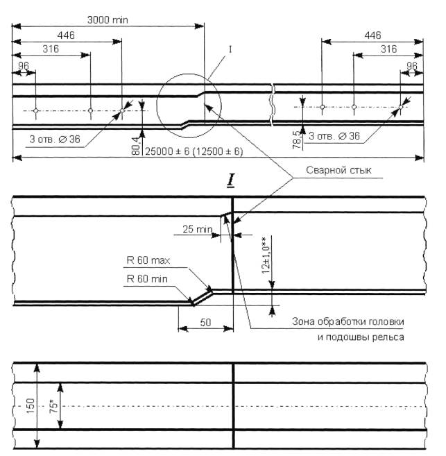 С целью получения рельсовыхплетей для бесстыкового пути проектной длины разрешается приваривать концевойрельс необходимой длины, но не менее