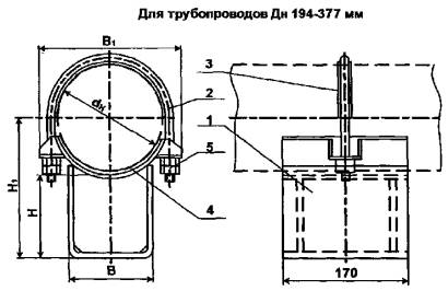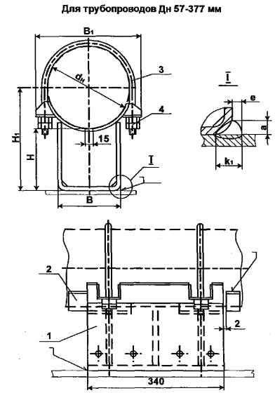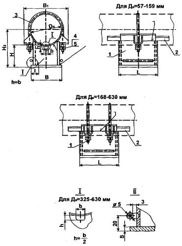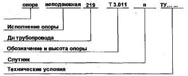 Пример условного обозначения опоры хомутовой неподвижной длятрубопровода Дн = 219 мм, Н= 95мм: