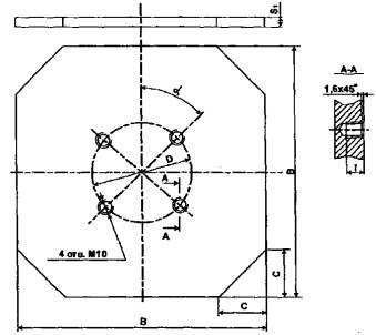 2.14.Отклонение от перпендикулярности d плоскости А относительно плоскости Б вкорпусах опор типов КП, КХ должно быть не более 1 мм на 100 мм длины ребра -Рис. 2.