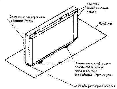 4. Установка панелей стен производится с опиранием их на выверенные относительно монтажного горизонта маяки. Прочность материала, из которого изготовляются маяки, не должна быть выше установленной проектом прочности на сжатие раствора, применяемого для устройства постели.