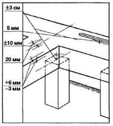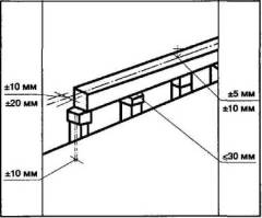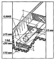 - в размерахстыков лотков и плит перекрытий - по проекту, в случае отсутствия указаний - неболее 20 мм;