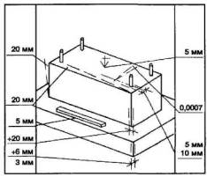 Предельныеотклонения от основных размеров элементов каналов (лотков каналов, плитперекрытий, опорных подушек) не должны превышать, мм: