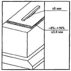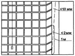 Отклонение отплоскости не должно превышать 5 мм.