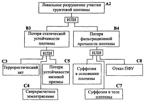 Результаты решения «дерева отказов» для грунтовой плотины Вогульского гидроузла