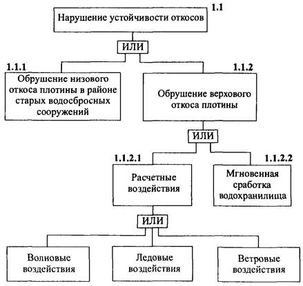Рис. П2.14. «Дерево отказов» для сценариев 1.1 и 1.2 аварий ГТС